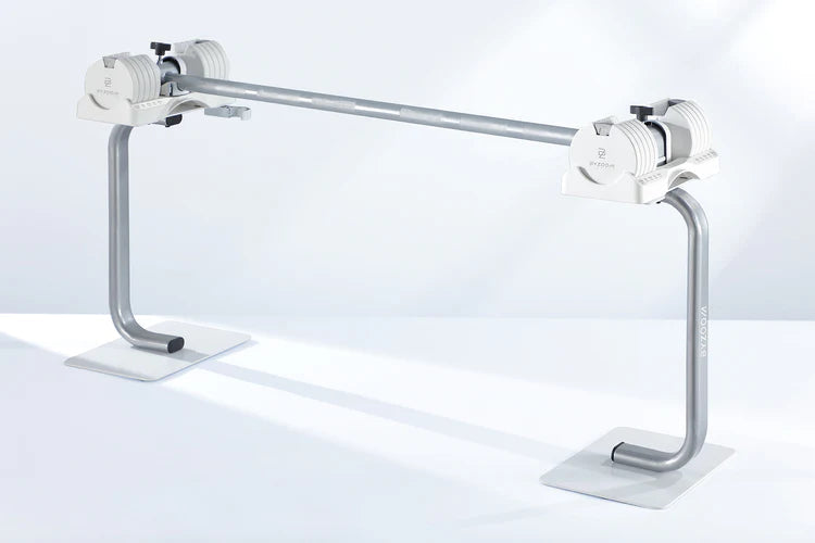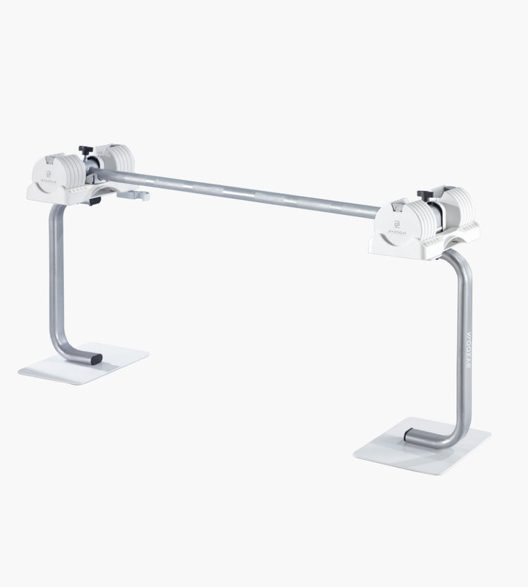 Tighten the knob to make sure the dumbbells are locked securely on the bar